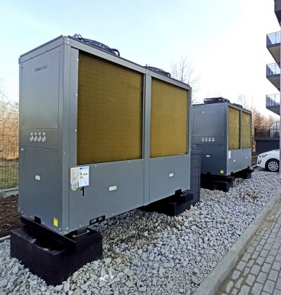 Pompa ciepła do ogrzewania i chłodzenia domu 11 kW, pompa ciepła do wody basenowej 7,6 kW, instalacja fotowoltaiczna 11 kWp, instalacja z 2 kolektorami słonecznymi