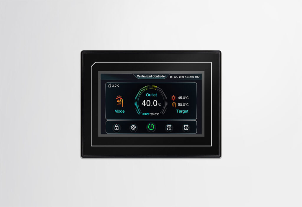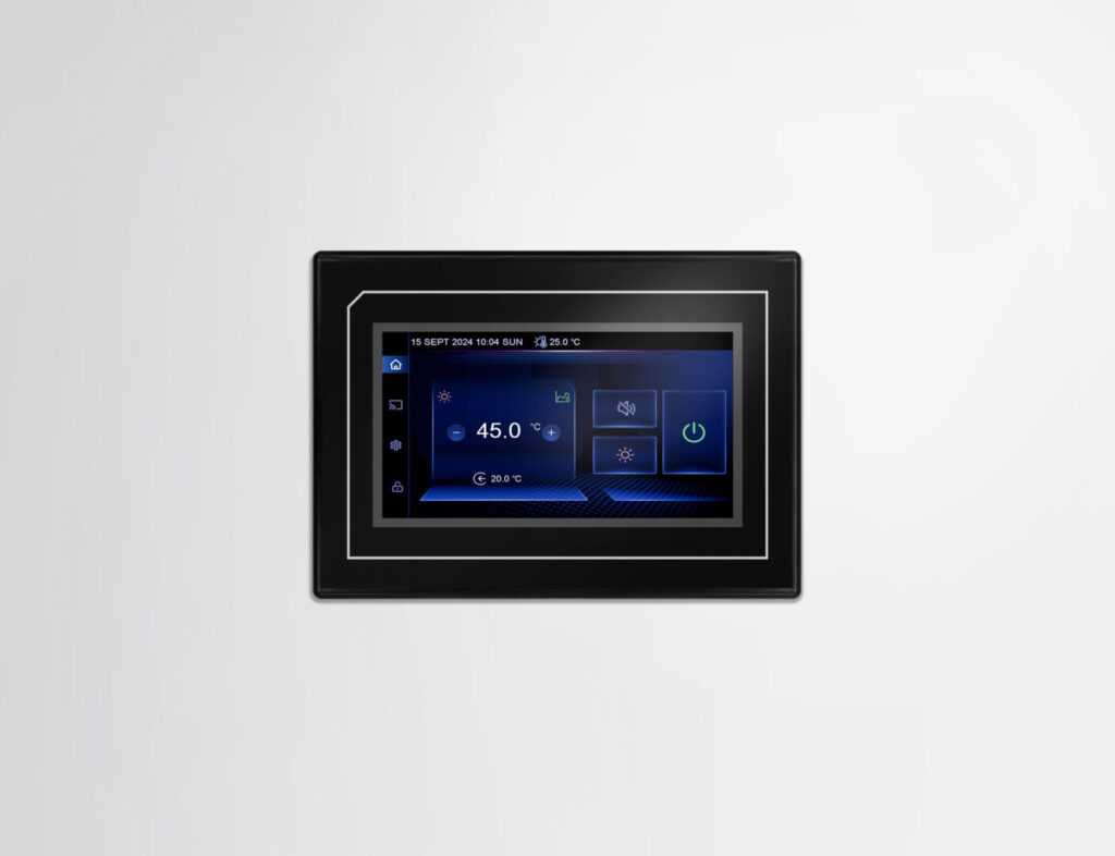 Duży ekran tekstowy pozwala na wygodną obsługę. Poza standardowymi funkcjami obsługi samej pompy ciepła, możliwa jest współpraca z kotłem grzewczym czy grzałką, a także zdalny nadzór przez Internet.