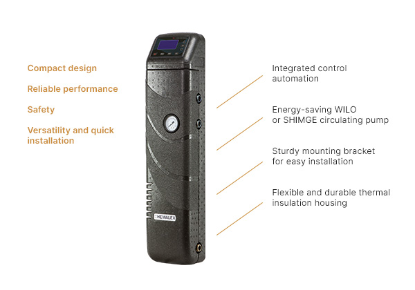 The compact design of ZPS 18E-01 ECO unit and the reduced number of connections not only make work easier and reduce installation time, but also reduce the likelihood of leaks. In addition, the factory connection to the circulating pump controller minimises the risk of damage to the pump through incorrect connection.