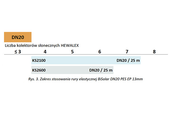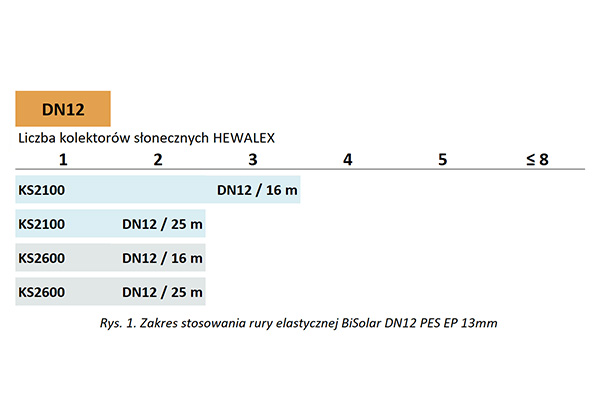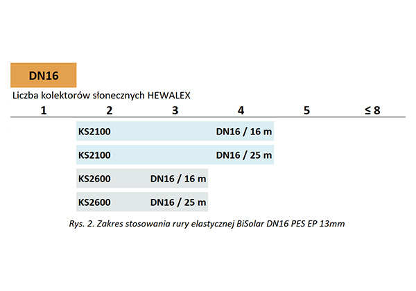 do wykonywania podłączeń kolektorów słonecznych o powierzchni całkowitej 16,5 m². Rura dostępna jest odcinku 25 m.