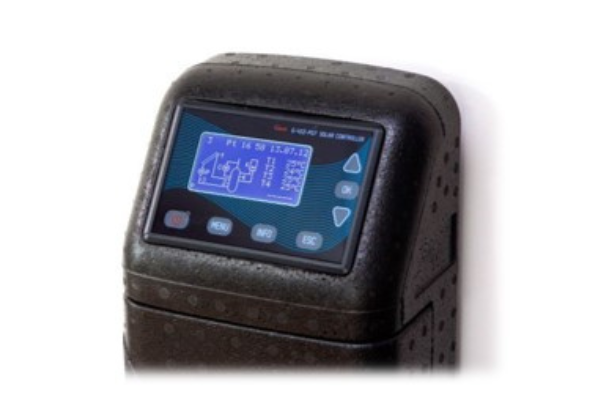 Wbudowany w zespół pompowy sterownik GH422 to jedno z najbardziej rozbudowanych rozwiązań na rynku, przeznaczone do zarządzania pracą zarówno standardowych, jak i rozbudowanych instalacji solarnych. Możliwa jest więc obsługa instalacji nie tylko służących do podgrzewania wody użytkowej, ale także wody basenowej, czy wspomagania ogrzewania domu. Sterownik GH422 umożliwia podłączenie m.in. 6 czujników temperatury, 3 pomp obiegowych, 2 przepływomierzy elektronicznych, anody bezobsługowej, presostatu obiegu glikolu, czy zasilacza UPS. Sterownik pozwala na współpracę instalacji solarnej z kotłem grzewczym, pompą cyrkulacji wody użytkowej, a także z systemem zdalnego nadzoru EKONTROL. Praca instalacji jest przedstawiona na wyświetlaczu LCD.